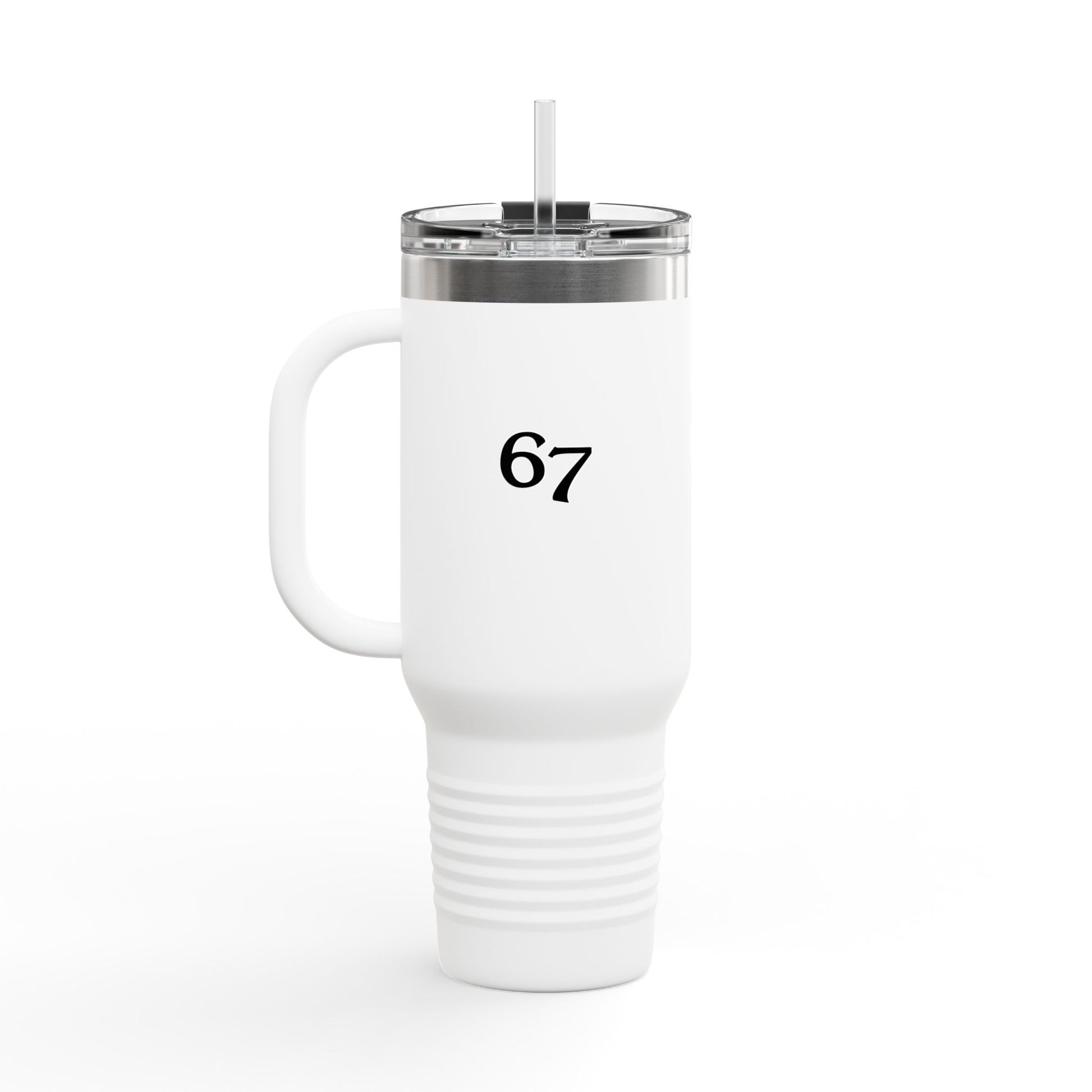 67 Insulated Travel Mug, Personalized 40oz, Perfect for Hot or Cold Drinks, Great Gift for Adventurers, Road Trips, and Work!